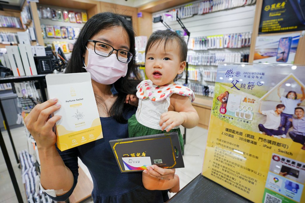 剛好八月門市配合父親節活動,只要是購買藍光盾螢幕保護貼,就可以參加兌換泰迪熊香氛。