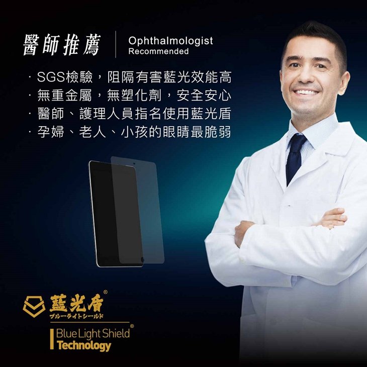 擁有中華民國專利的藍光盾,抗藍光效能佳,是目前市售阻隔效能最高的品牌(SGS檢驗阻隔藍光46.9%),且有眼科醫師推薦,選擇它用起來更安心!