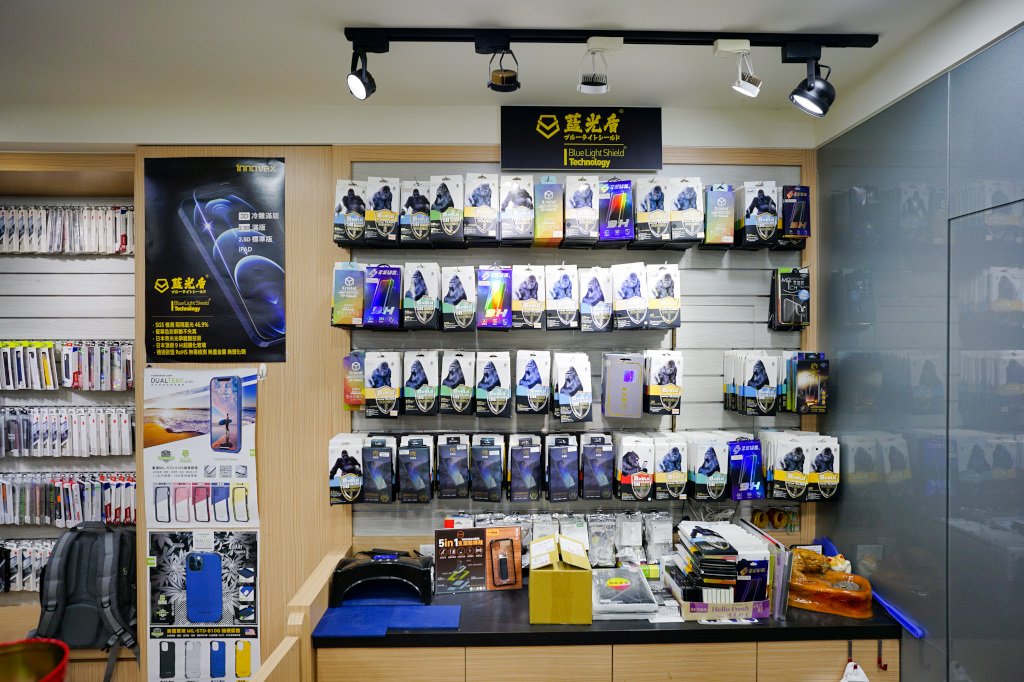 除了款式齊全的抗藍光藍光盾保護貼,所有你想得到的手機周邊產品這裡都有,明亮寬敞逛起來舒適,陳列擺設一目了然,