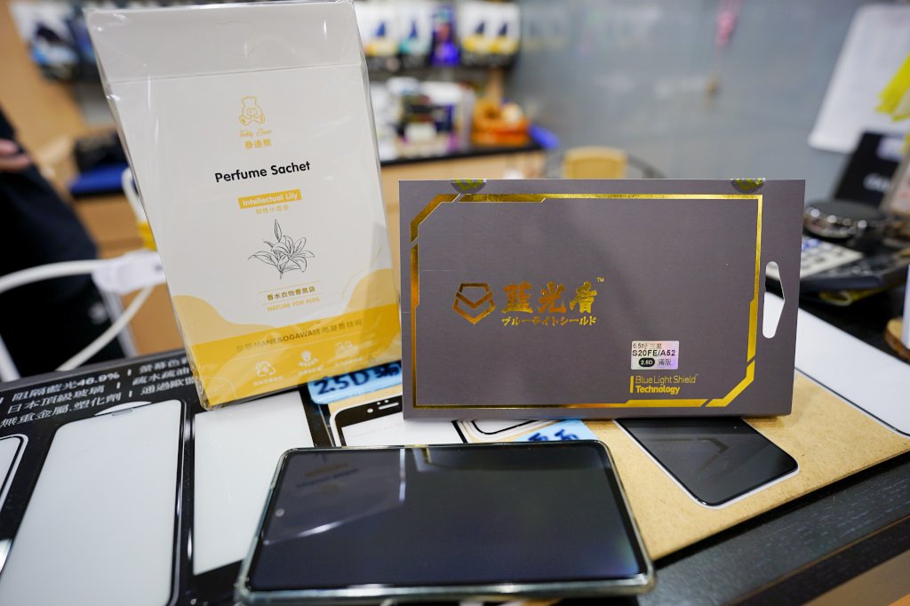 找了桃園一間聽說貼保護貼技術很好的彩殼屋3C配件(龍安店),購買藍光盾保護貼享免費貼膜的服務,店內還有非常多手機相關的3C配件,等待包膜時間順便逛逛也好。