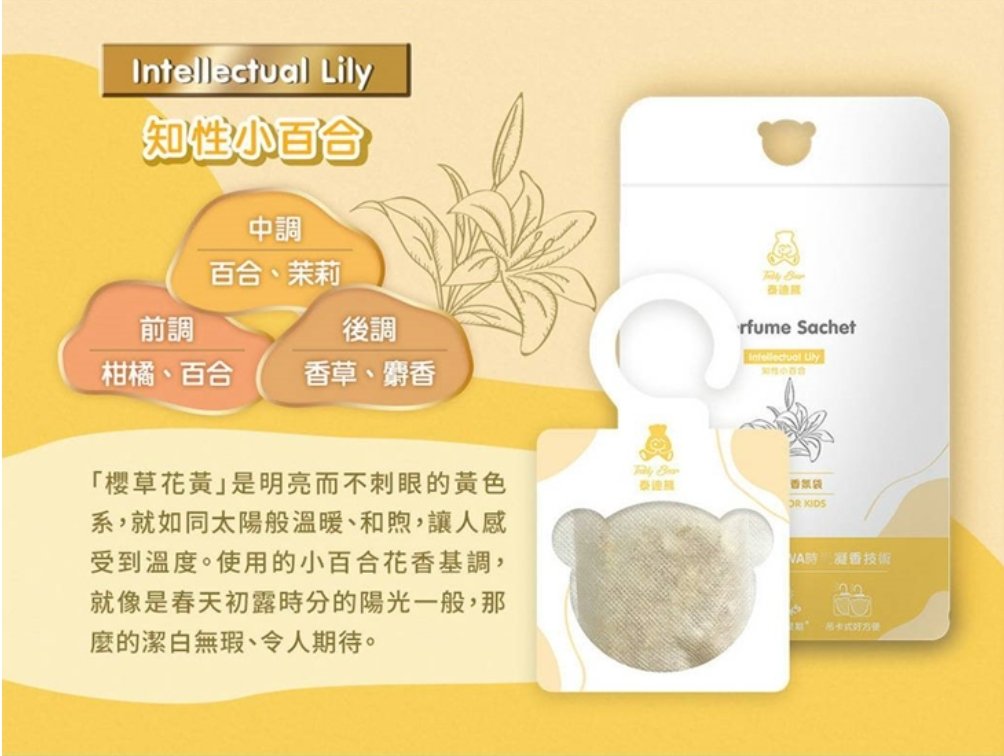 我選了黃色的泰迪熊香氛袋【知性小百合】兌換,淡雅的香氣,掛勾式的設計很適合掛在我們車子裡或是衣櫃裡。