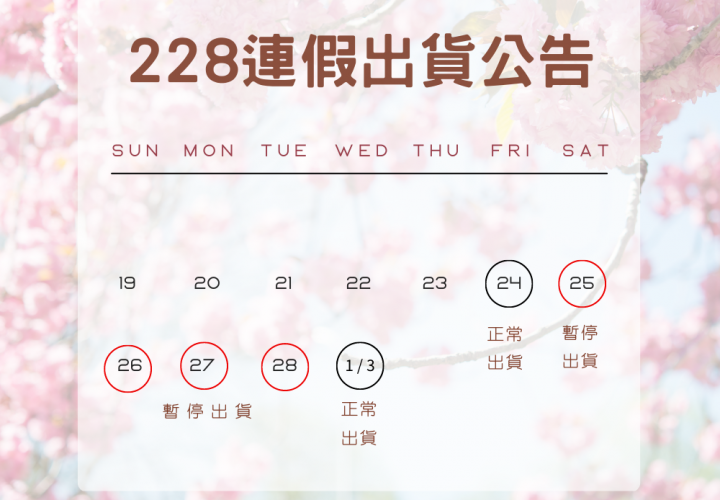 228連假出貨公告安排