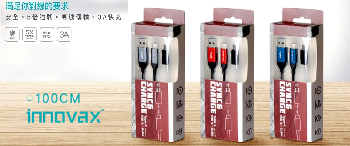 INNOVAX 品牌,USB-3.1 TYPE-C 傳輸充電線